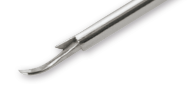 Vertical scissors with cutting action • Rounded lower inferior edge of scissors blade, designed to minimize unintentional engagement of retina